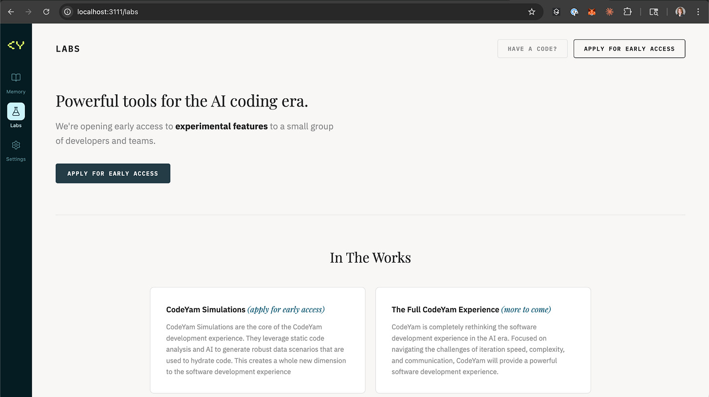We did this by temporarily gating (for non-CodeYam team users) our more experimental R&D functionality and shipping our CodeYam CLI tool with the CodeYam Memory feature that external users could try front and center.