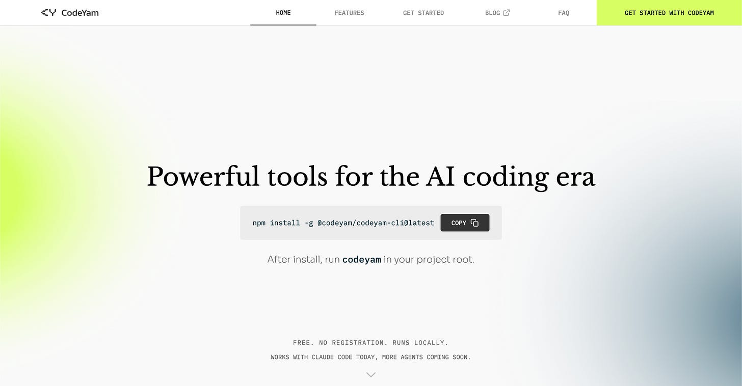 We redesigned and relaunched our website to emphasize how easy it is to get started with CodeYam CLI & Memory for Claude Code, and that the tool is free, local, and requires no sign-up.